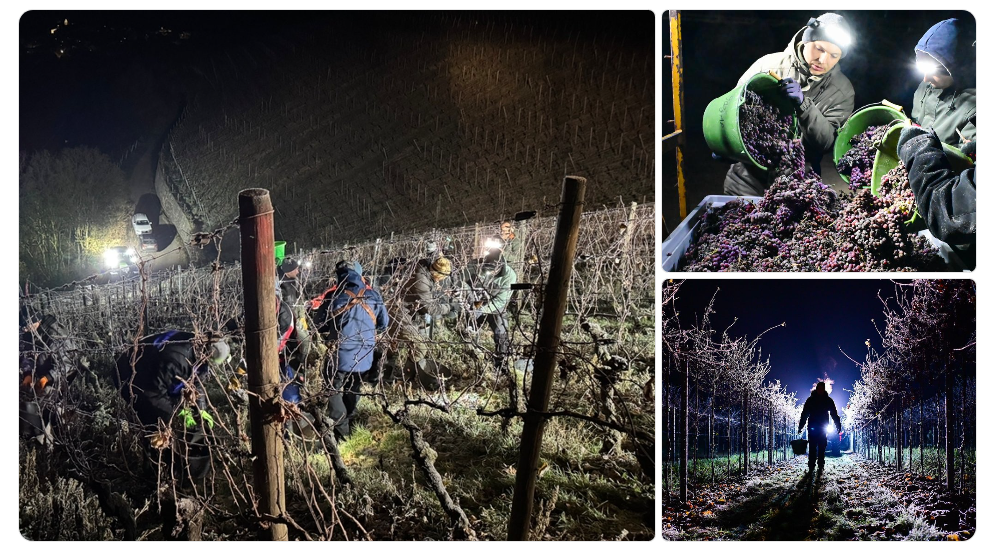 Die Lese begann außergewöhnlich früh: Bereits im November 2025 ermöglichten strenge Frostnächte – teils bis –9 °C – die Ernte der gefrorenen Trauben.